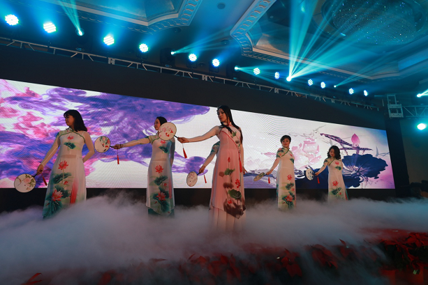 2月8日晚,集团在北京百富怡大酒店举行2018年迎新春联欢晚会,集团董事局主席王贵武致祝酒辞。整场晚会采取自导自演的方式,表演节目来自集团各部门、各子公司及合作单位。晚会内容形式多样、精彩纷呈、积极向上、催人奋进,充分展示了集团员工的多才多艺、团结协作的精神风貌。相声、小品、瑜伽、合唱、擒拿表演精彩不断,晚会高潮跌起。整场晚会在大合唱“天耀中华”中结束,代表了集团全体员工祝福祖国、祝福集团明天更加美好的心愿!